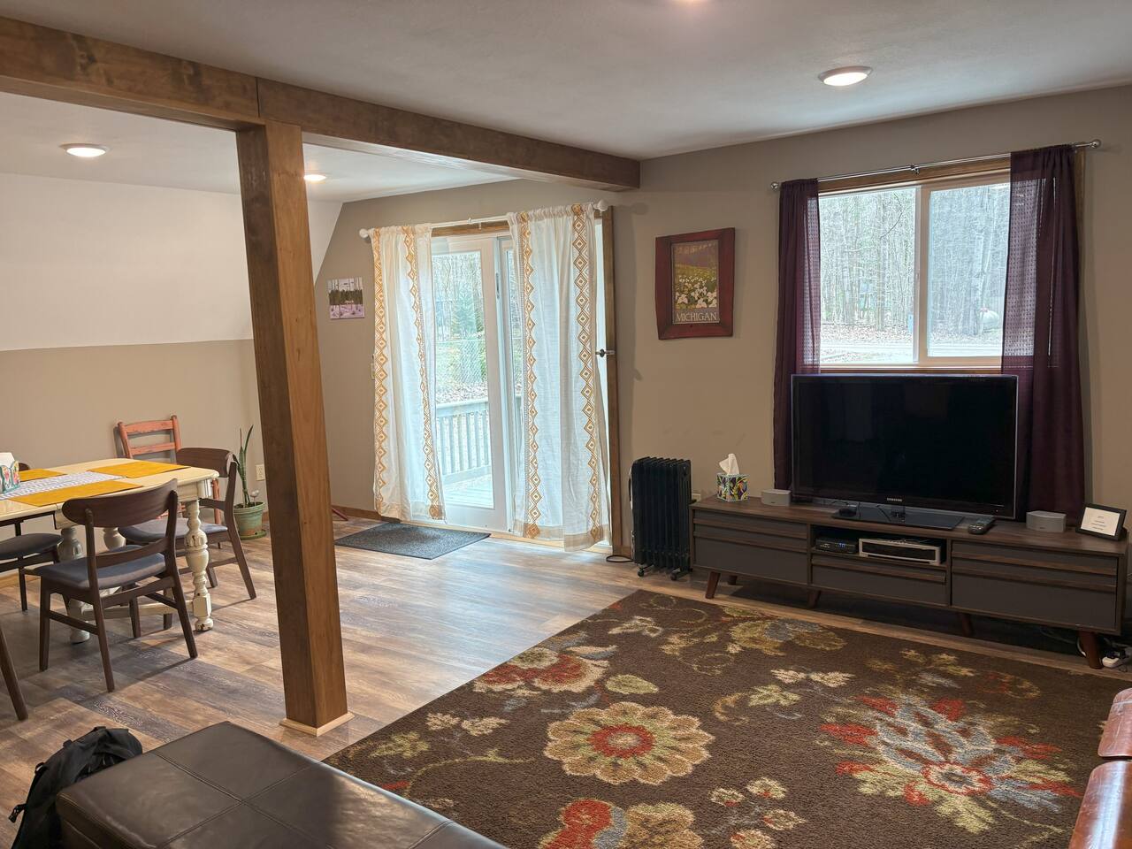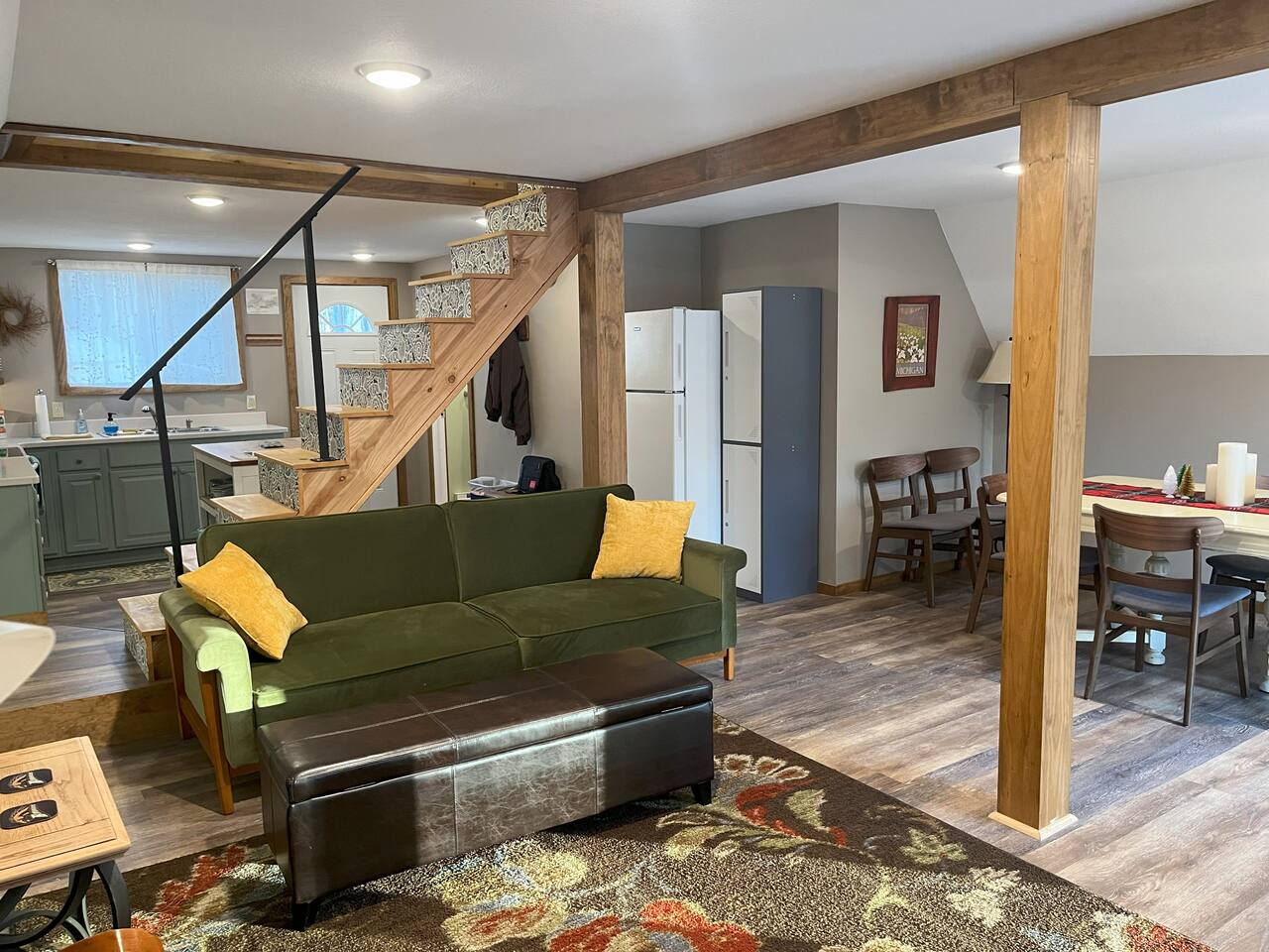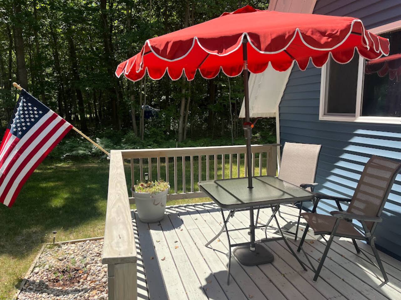Why you will love staying here (from past reviews): *Exceptional Cleanliness and Comfort-"spotless", "super clean", "cozy" and "comfortable". *Great Location: Perfect home base for for beach days and hiking in Ludington State Park. *Pet Friendly and Homey: "Our furry family members felt right at home" and "Food and water bowls provided". *Key Amenities: Guest highlight that the home has "everything we needed" including all desired amenities, a large kitchen, and a grill for cooking out. *Responsive Host: The rating for communication is 5 out of 5. Home Details: Bedroom 1: Queen Bed | Bedroom 2: Full Bed, Twin Bed | Livingroom Sofabed Outdoor Living: Sunny front and back deck, gas grill, outdoor seating & dining, fire pit, large yard. Indoor Living: Smart TV, DVD player, breakfast bar, dining table, shower/tub combo, washer/dryer, portable A/C in master bedroom, electric heat in all rooms, ceiling fans in bedrooms. Kitchen: Stove/oven, refrigerator, cooking basics, dishware/flatware, coffee maker, toaster, microwave. General: Free WiFi, central heating/portable A/C units, complimentary toiletries, hair dryer, hangers, linens/towels, trash bags/paper towels. FAQ: Steeper/narrower than standard staircase used to access bedrooms, however very sturdy and has a solid iron handrail along the entire length. Portable A/C units on both floors. Pets: Responsible pet owners are welcome to bring your fury family members. Please indicate so by including them in your guest list. More than one pet requires prior approval. If you intend to let your pets on the furniture/bedding, please bring your own blankets to protect the surfaces as you will be charged if excessive cleaning is required. Please do not bring destructive pets, you will be held accountable for damage. As always, as a responsible pet owner, clean up your pet waste inside and out. Parking: Driveway (6 vehicles), room for Boats/RV’s Lake Access: Public boat launch less than 1 mile Ludington: Home to 28 miles of sugar-sand coastline and four different beaches. Outdoor rec includes boating, fishing, hiking, lighthouses, farmers market, shops, restaurants, live music, etc. Check the event calendar at pureludington!