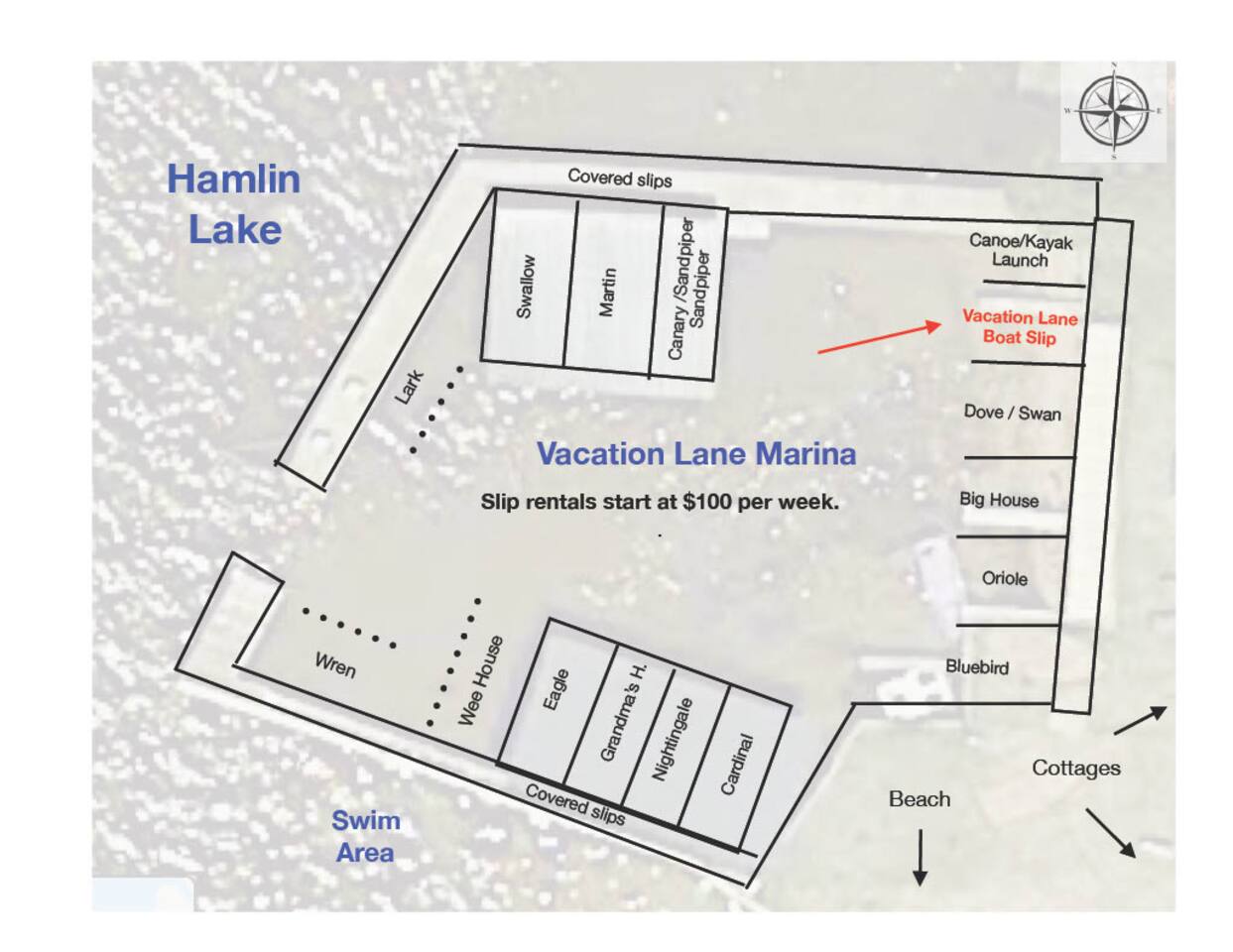 Vacation Lane: 13 privately owned cottages.